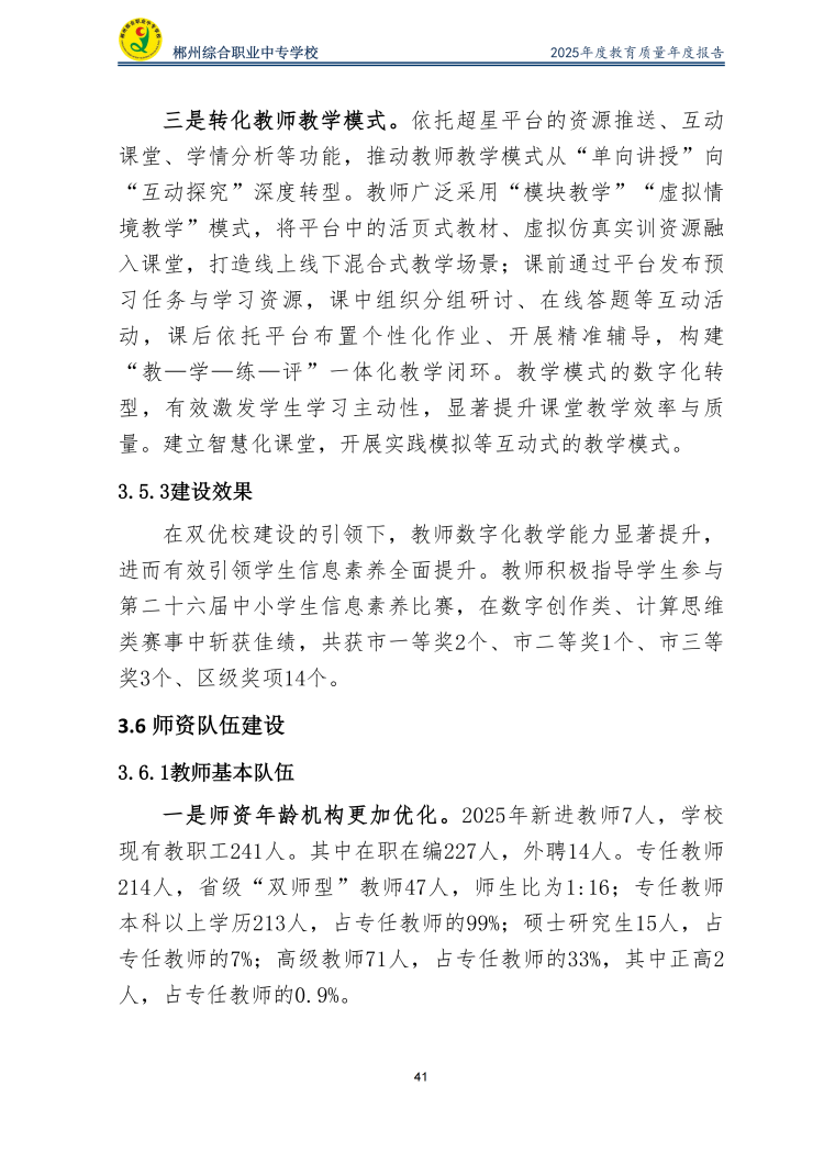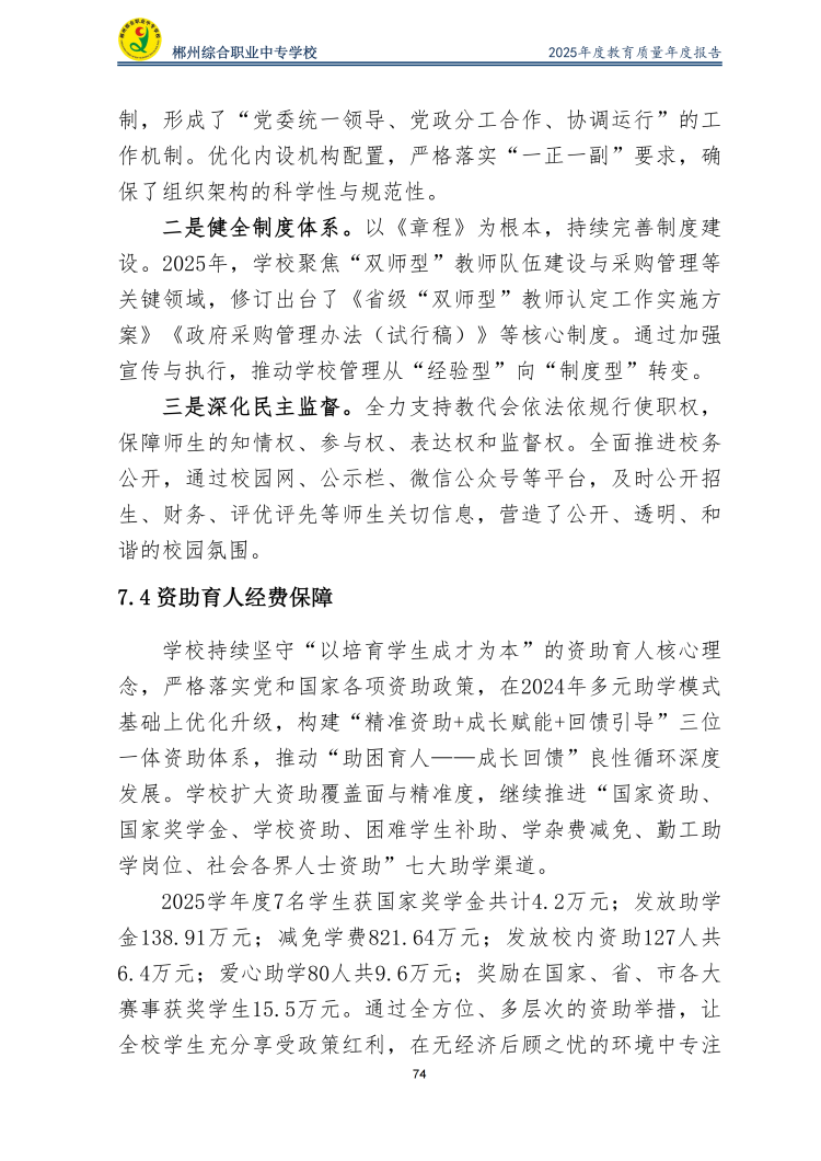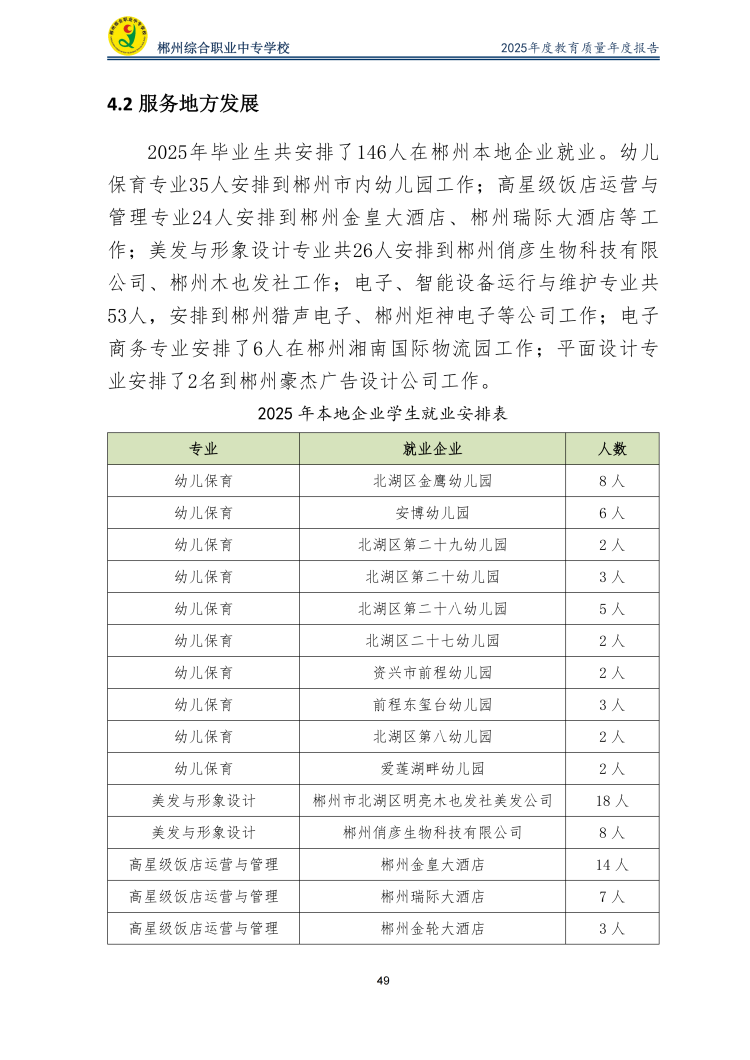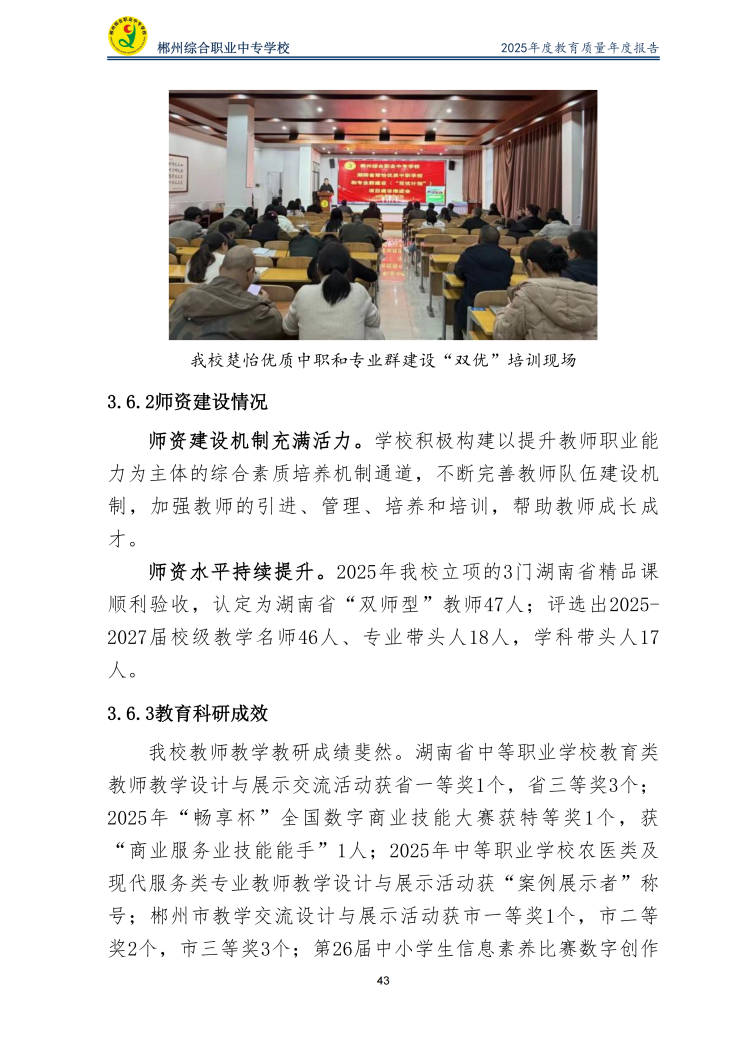 郴州综合职业中专学校2025年度教育质量年度报告