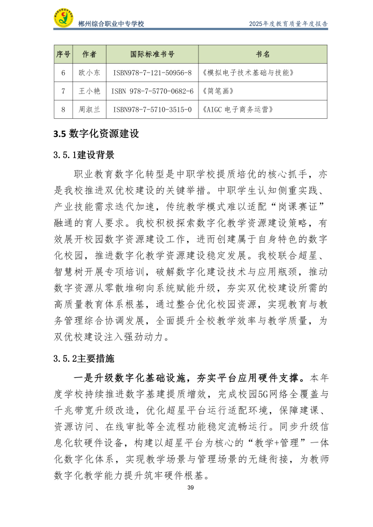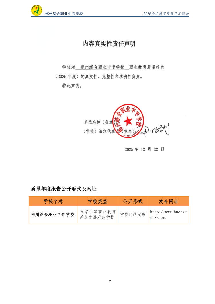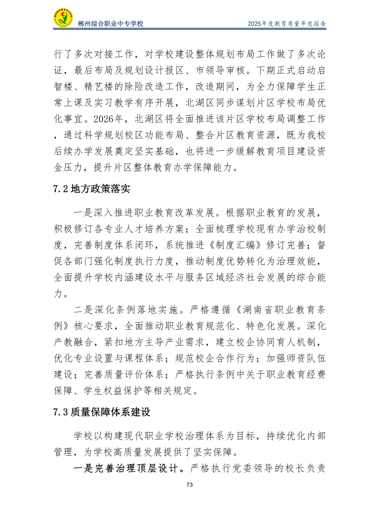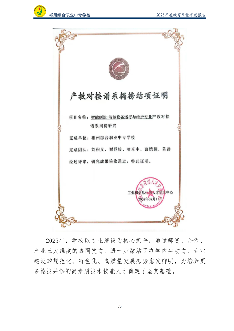 郴州综合职业中专学校2025年度教育质量年度报告