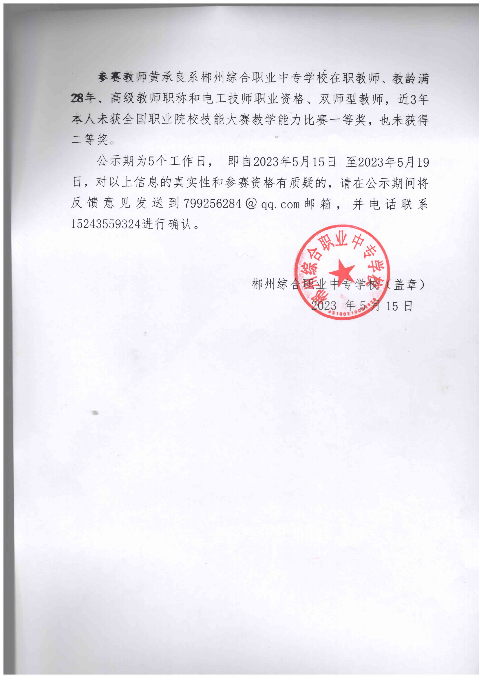 2023年郴州市职业院校教师职业能力竞赛教学能力比赛-郴州综合职业中专学校参赛团队信息公示